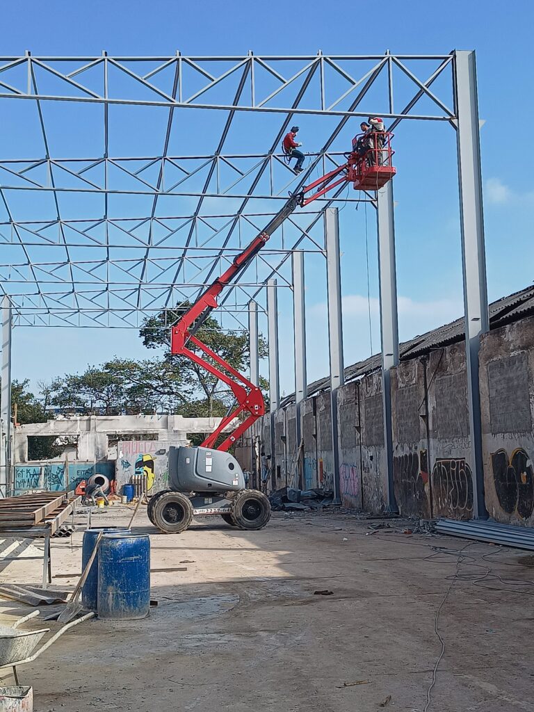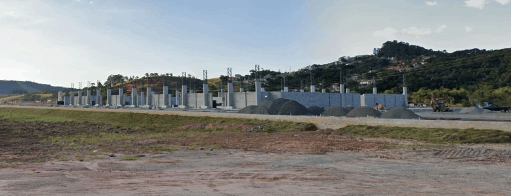 Fabricação e Montagem das estruturas metálicas da cobertura de um galpão medindo 30 x 74,60 metros totalizando 2.237 metros quadrados, contendo 33 colunas alinhadas em 03 fileiras
